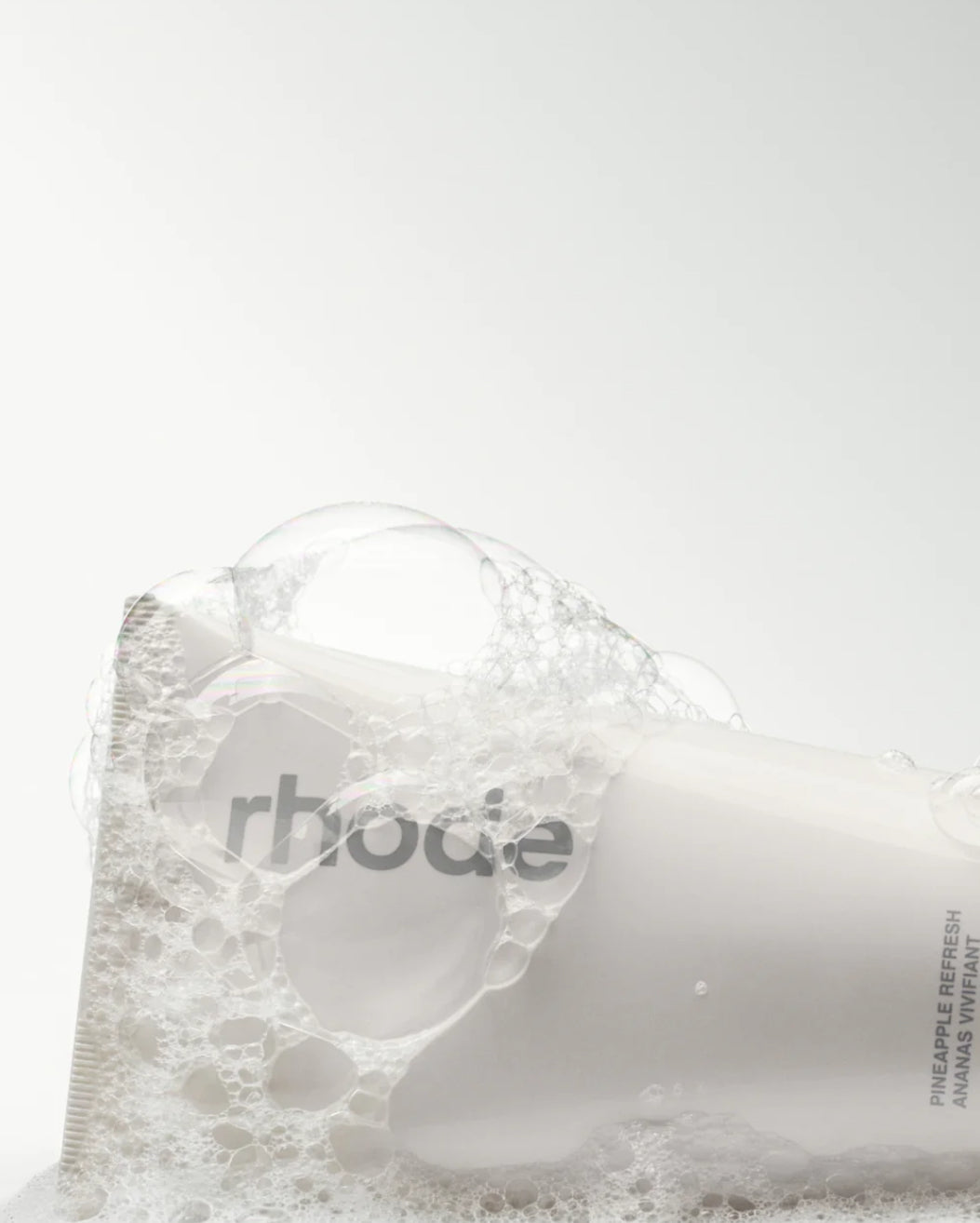 The first step in your rhode routine. A refreshing balm-to-lather daily cleanser formulated with polyglutamic acid (aka PGA), green tea extract, and pineapple enzyme to leave your skin clean, soft, and bouncy post-rinse. Gentle enough for morning and evening use + safe for sensitive skin. Size: 150ml/ 5fl oz.